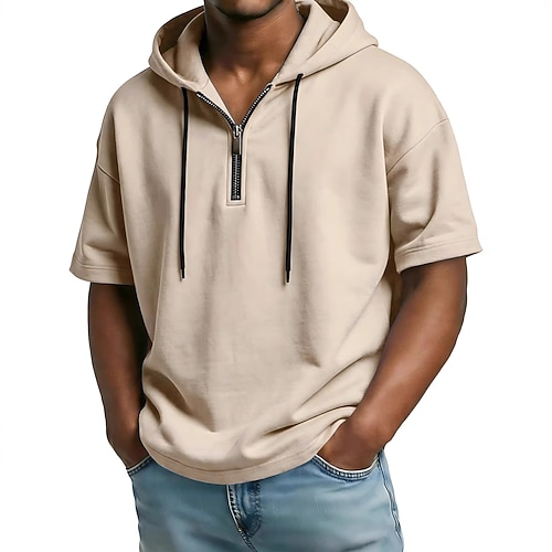 Da uomo Maglietta Felpe con cappuccio Manica Corta Con cerniera Estate Primavera Tinta unica Tradizionale / Vintage Casual Con cappuccio Casa Formale Sport Outdoor Rosa Bianco Nero Maglietta Top