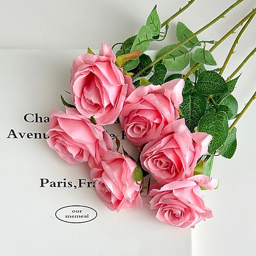 6 rose artificiali, rose finte realistiche adatte per decorazioni per la casa, matrimoni, San Valentino, Natale, centrotavola, bouquet da sposa, perfette per soggiorno, camera da letto, esposizione in