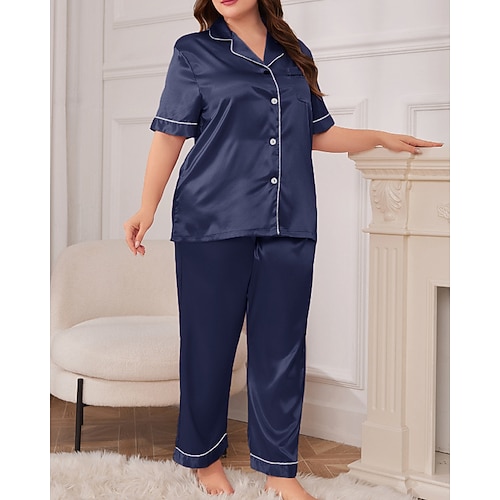 Per donna Pigiama Casual Morbido Raso Colore Puro Tasca Bottoni Pantalone Quotidiano Casa Da letto Manica Corta Colletto a Camicia Nero Champagne Rosa Rosso Blu marino Estate Vestibilità comoda
