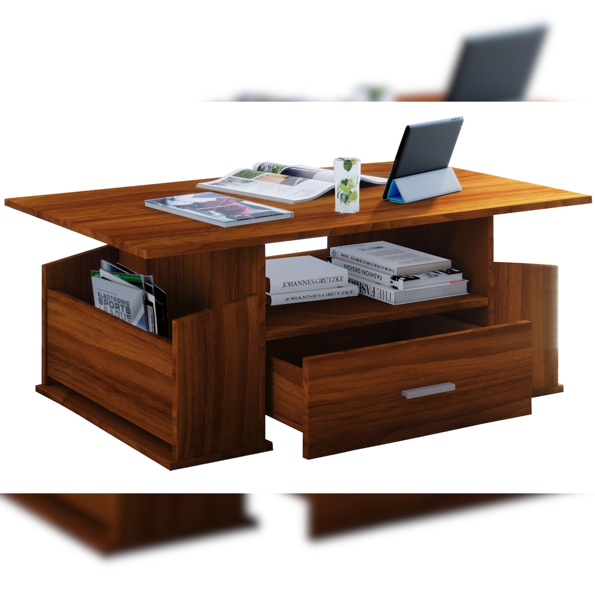 VCM Beistelltisch & Couchtisch Junata Kern-Nussbaum H. 44 x B. 110 x T. 52 cm