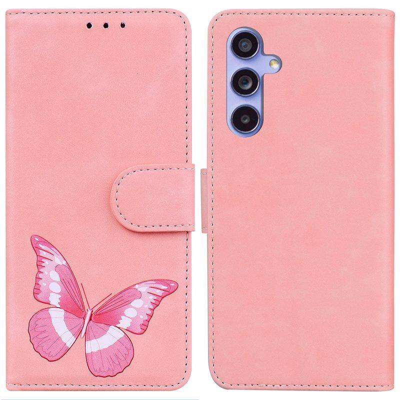 Samsung Galaxy A35 5G Fodral Äkta Läder Fjärilstryck - Rosa