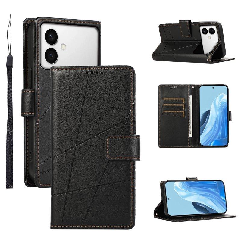Samsung Galaxy S26 Edge Plånboksfodral Imprint Konstläder Med Handrem - Svart