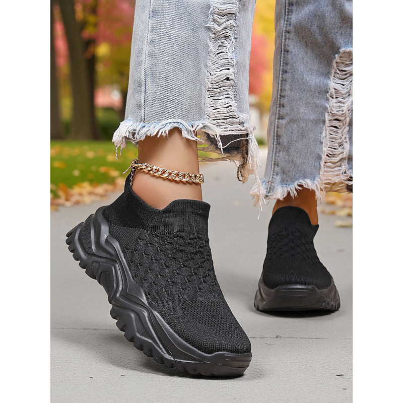Slip-On Flyknit Sneakers with Cat Print Design, Breathable Upper and Comfortable Sole for Casual and Fun Wear