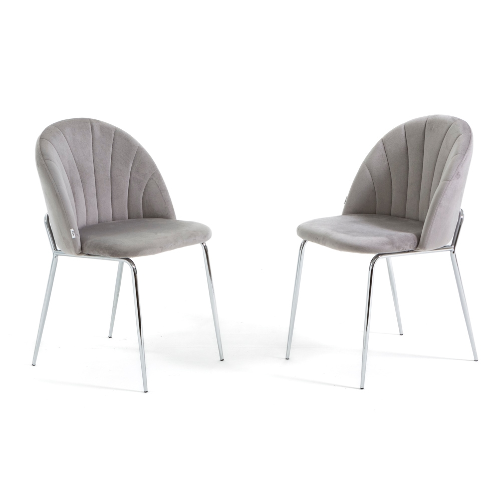 RATTATAN Set aus 2 gepolsterten Samtstühlen für den Innenbereich,Metallbeine,elegantes Design,für Küche,Esszimmer,Restaurant–Hellgrau/Silber–Sonia
