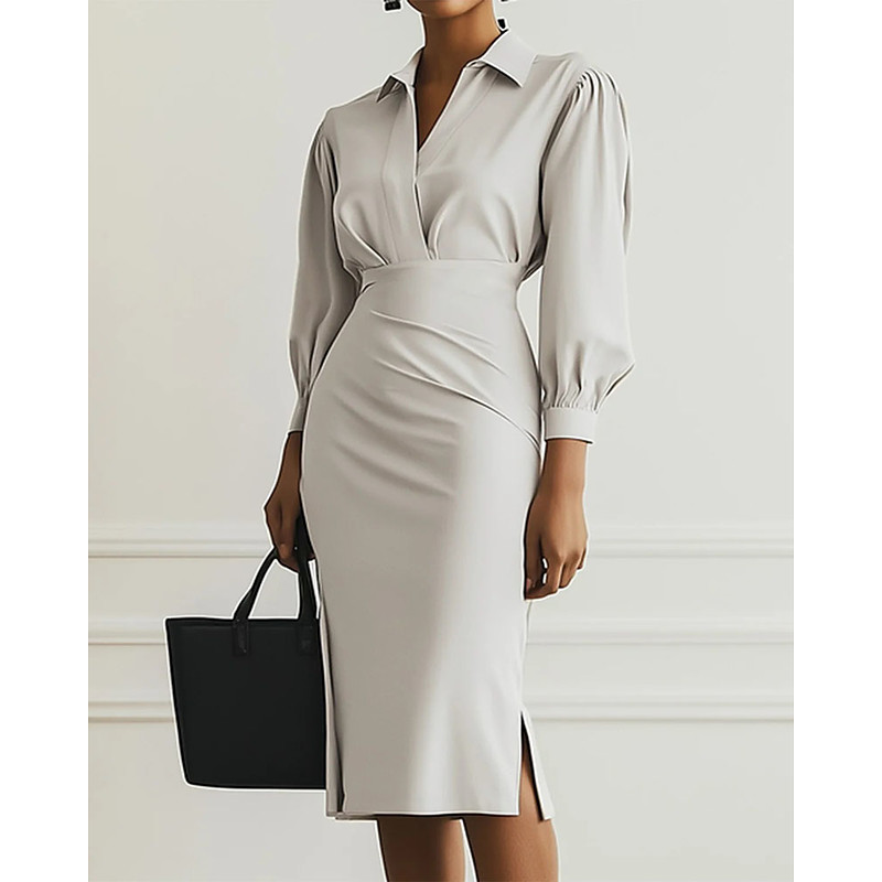 Women's Long Dress Maxi Dress Sheath Dress Formal Dresses Elegant Fashion Modern Daily Office Holiday Regular Fit Plain Long Sleeve Stand Collar Pink Purple Light Blue Spring Fall Winter