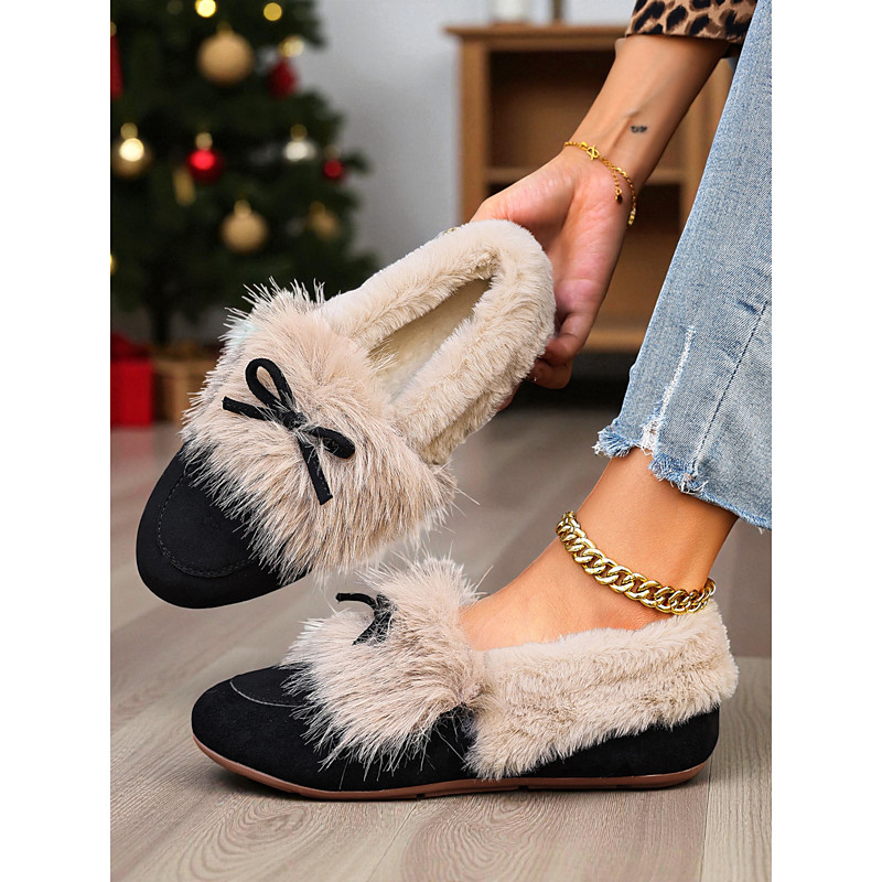 Women's Loafers Classic Loafers Soft Shoes Comfort Shoes Christmas Daily Bowknot Flat Heel Round Toe Casual Comfort Faux Fur Faux Suede Loafer Orange red Almond Black