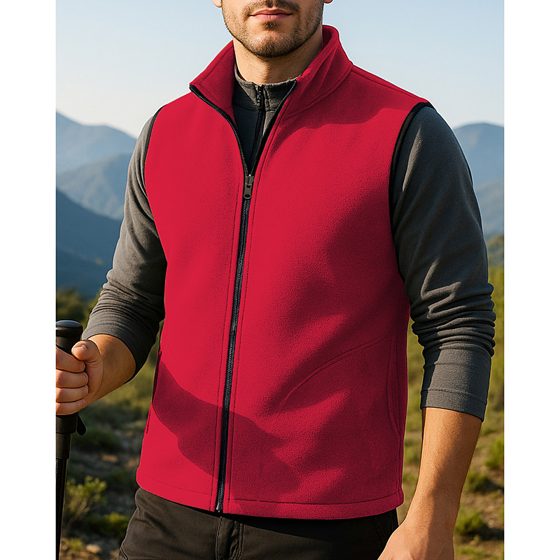 Men's Fleece Vest Sleeveless Vest Outdoor Thermal Warm Winter Full Zip Polyester Black Army Green Red Hunting Fishing Climbing