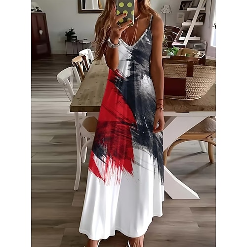 Per donna Abito maxi Vestito Estivo Abito a trapezio Abito Sottoveste Vacanza Casual Boho Spiaggia Vestibilità regolare Grafico Astratto Senza Maniche Scollo a V Blu Nero Rosa Rosso Estate Primavera