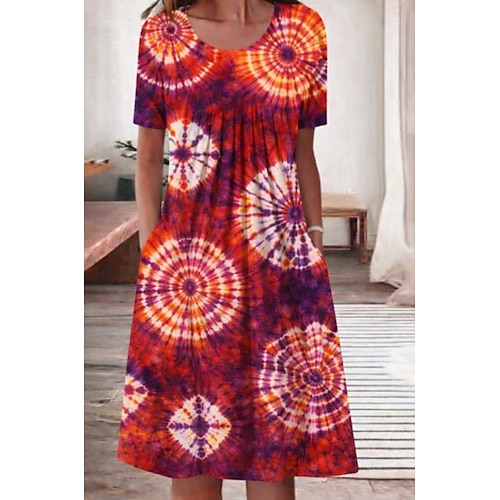 Per donna Abito Midi Vestito Estivo Vacanza Casual Spiaggia Quotidiano Uscire Vestibilità comoda Grafico Geometrico Manica Corta Scollo a V Blu Viola Arancione Verde Estate