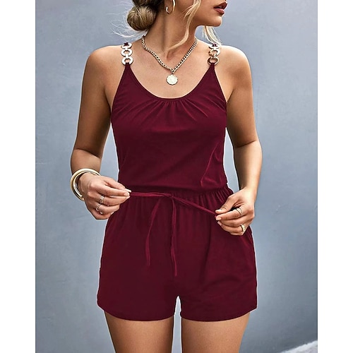 Per donna Normale Tuta Attivo Tinta unica Senza maniche A V Lacci Tasche Da mare Giornaliero Standard Nero Vino Estate