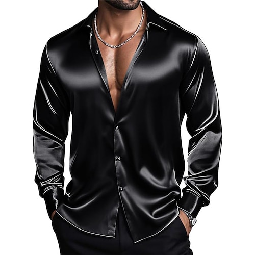 Per uomo Camicia Camicia in raso Camicia elegante Camicia casual Camicia con Bottoni Semplice Formale Matrimonio Blu chiaro Nero Bianco Vino Manica Lunga Bavero Primavera Autunno Tutte le stagioni