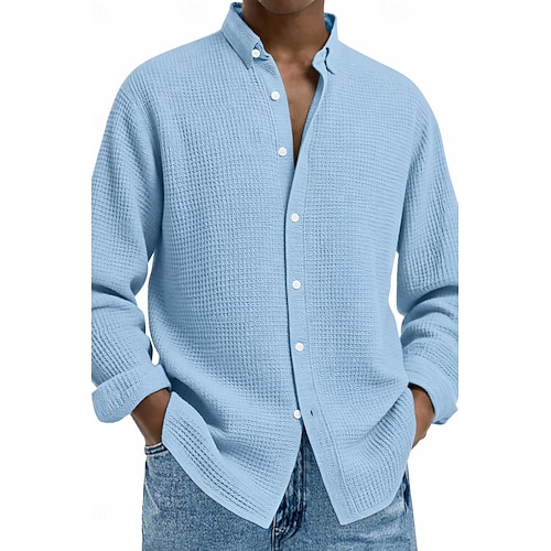 Per uomo Camicia Camicia a nido d'ape Camicia casual Camicia con Bottoni Nero Bianco Vino Blu marino Blu Manica Lunga Semplice Bavero Casuale Quotidiano Abbigliamento Moda Streetwear