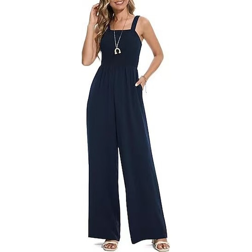 Per donna Normale Tuta Attivo Tinta unica Senza Maniche Gamba larga Collo quadrato Tasca Quotidiano Vacanza Vestibilità comoda Nero Vino Blu marino Estate