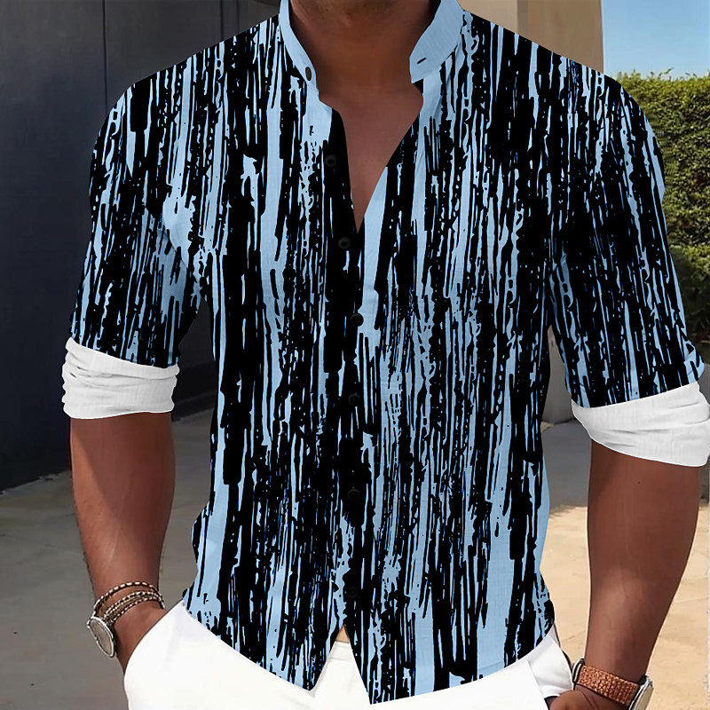 Men's Line Dress Shirt Button Up Shirt Long Sleeve Casual Vacation Home Daily Summer Spring Fall Band Collar grandad collar 3D Print Black Blue Brown Green