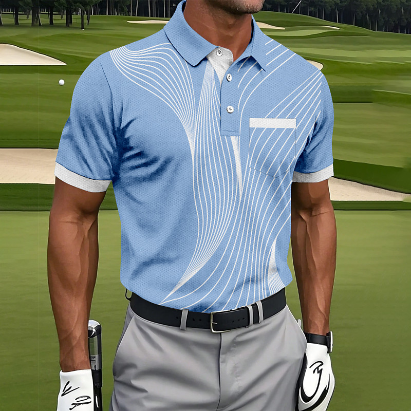 Men's Geometic Line Polo Sports Polo Shirts Short Sleeve Polo Shirts Collared Shirts Sportswear Casual Outdoor Athleisure Daily Wear Pocket 3D Print Buttons Summer Blue Brown Green