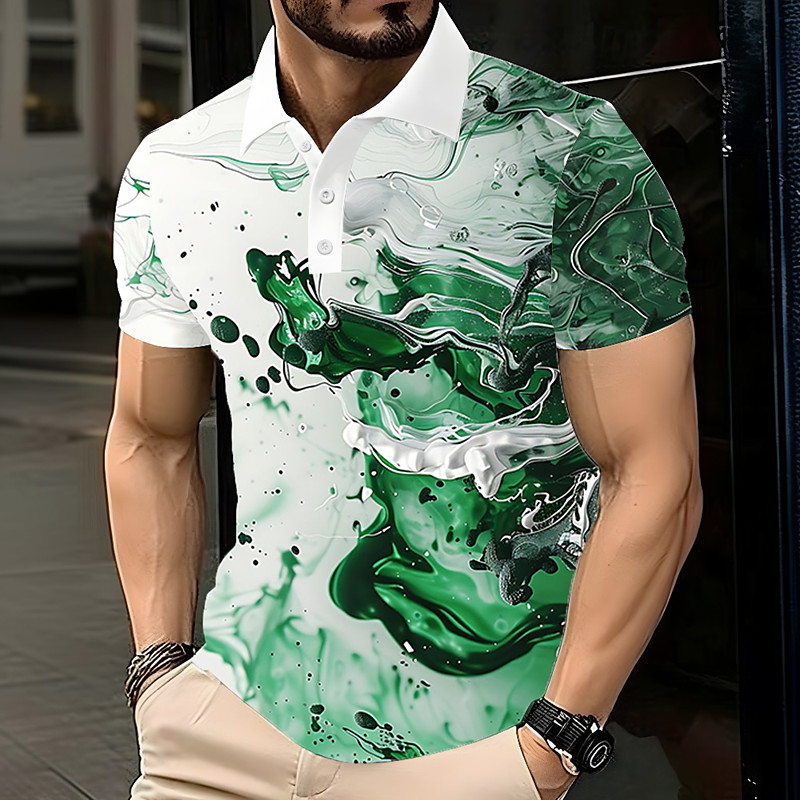 Men's Marble Polo Short Sleeve Polo Shirts Lapel Casual Athleisure Daily Wear 3D Print Buttons Summer Red Blue Green