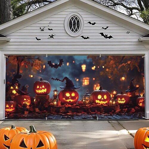 Halloween Copertura per porta del garage Grande appeso Zucca 3D Gotico punk oscuro Da serata All'aperto Sfondi di ripresa Yarda Casa infestata Decorazioni Parete Porta Sfondo