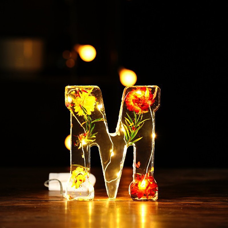1 Pc 11.5CM 26 letter LED night light, dry flower warm light desktop decoration light, ornament light, Christmas Halloween wedding birthday party decoration light