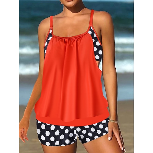 Damen Tankini 2-teiliges Badeanzug Shorts Bauchkontrolle Hohe Taille Schlank Rücklos Urlaub Strandbekleidung Polka Dot U-Ausschnitt Ärmelloses Badeanzug