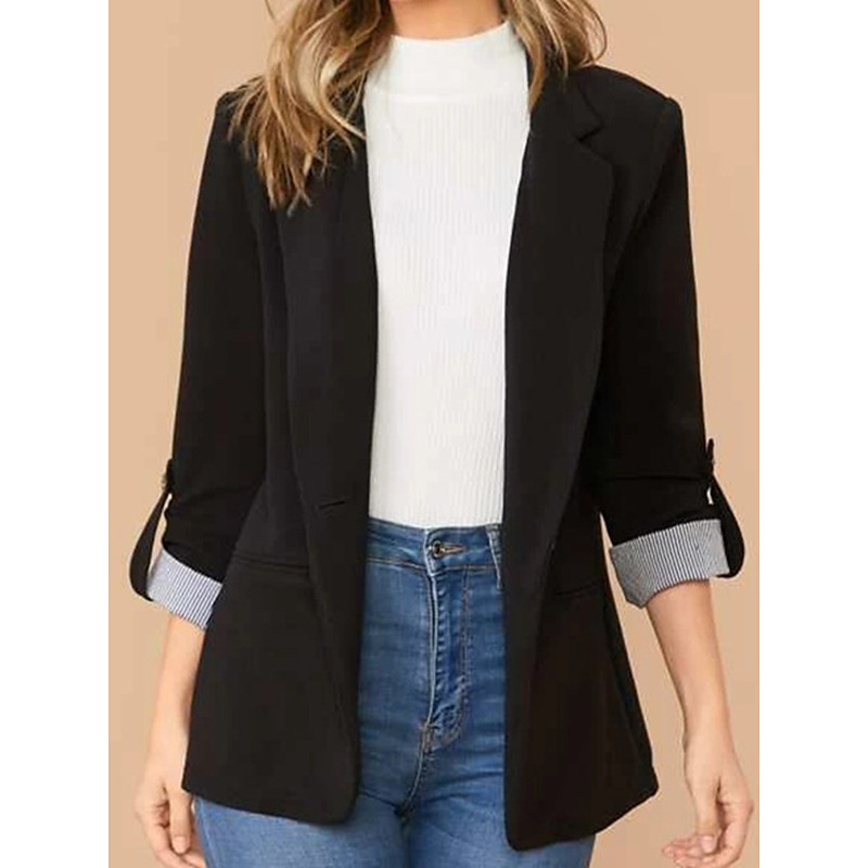 Women's Blazer Work Stripe Solid Color Warm Stylish Regular Fit Outerwear Long Sleeve Spring Light Blue S