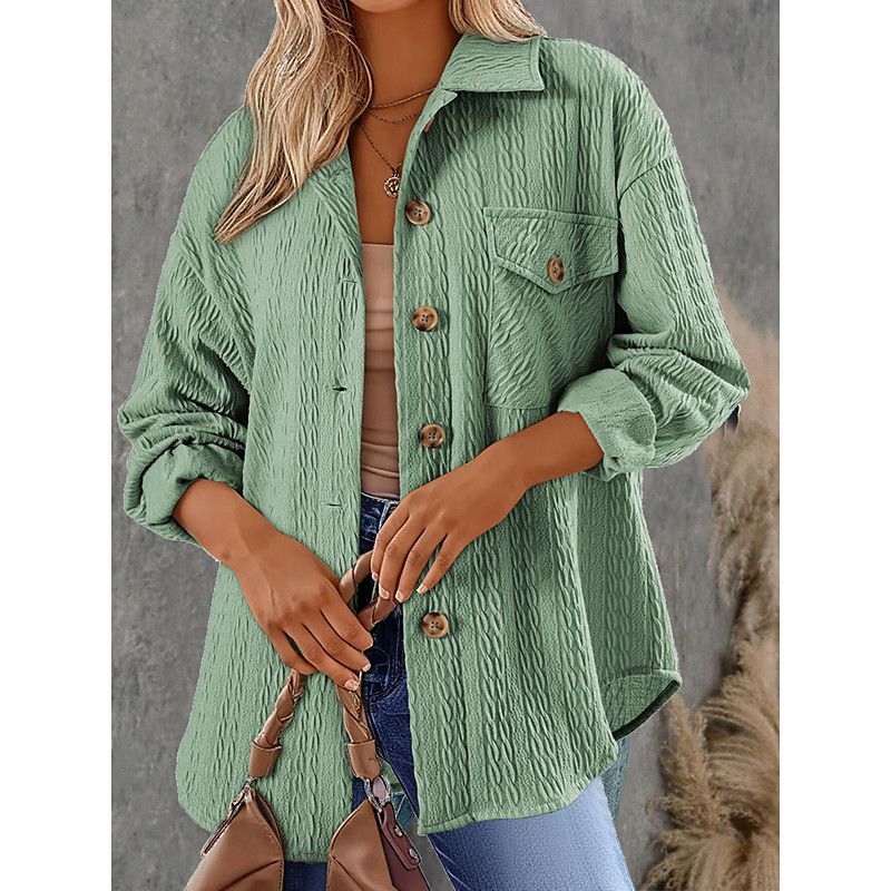 Women's Vacation Button Solid Color Breathable Fashion Loose Fit Outerwear Long Sleeve Spring Pink S