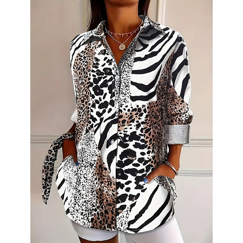 Women's Shirt Graphic Leopard Elegant Bohemia Vintage Long Sleeve Shirt Collar Regular Tops Work Daily Buttons Print Yellow Blue Brown Spring Fall Winter Spring, Fall, Winter, Summer