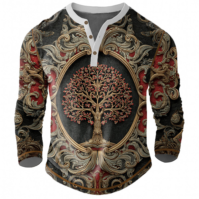 Men's Graphic Trees Henley Shirt Tee Long Sleeve Vintage Stylish Outdoor Casual Daily Spring Spring Fall Dark Blue Green Khaki Henley Henley T-Shirt