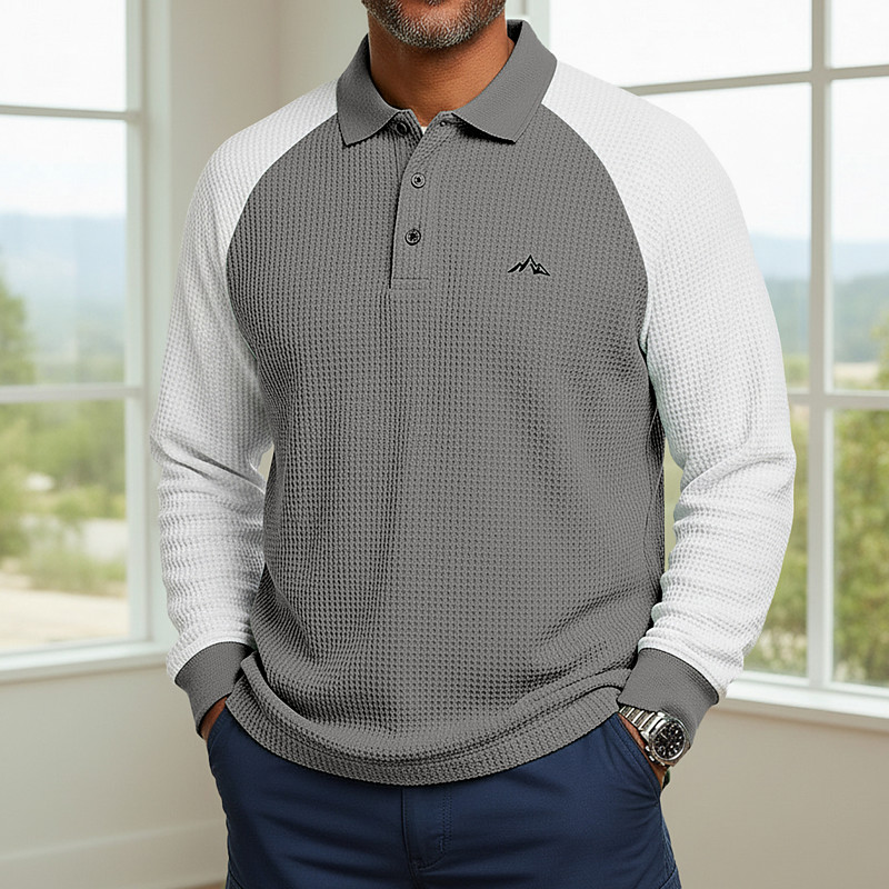 Men's Waffle Polo Shirts Quarter Zip Polo Outdoor Causal Quarter Zip Long Sleeve Fashion Modern Solid Color Color Block Knitted Spring Spring Fall Regular Fit Black Navy Blue Purple Green Gray