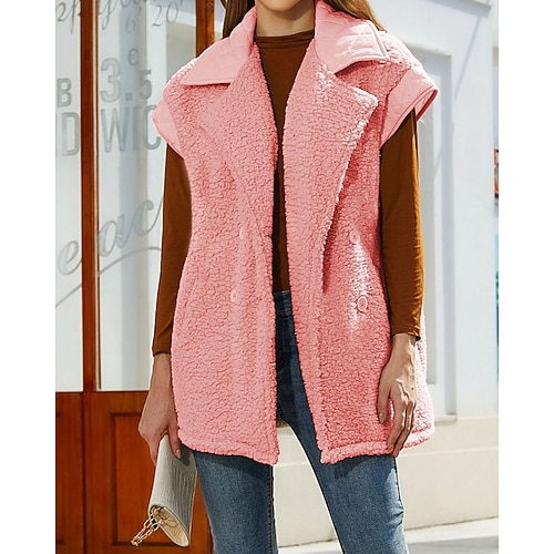 Per donna Cappotto Invernale Gilet in pile Gilet Caldo Confortevole Patchwork Bottoni Moda Casual Tinta unica Vacanza Streetwear Casuale Abbigliamento quotidiano Lungo Collo ripiegato Vestibilit