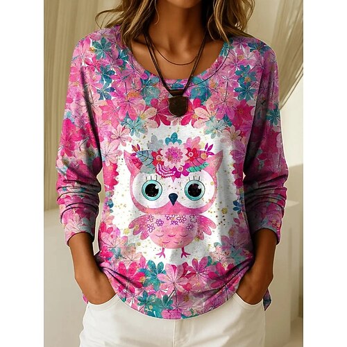 Per donna Maglietta Grafico Geometrico Piante Vintage Elegante Casual Manica Lunga Girocollo Top Regolari Quotidiano Weekend Stampato Blu Rosa Azzurro cielo Fucsia Arancione Primavera Autunno Inverno