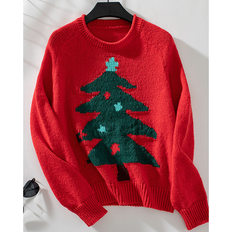 Women's Christmas Sweater Fair Isle Sweater Sweater Pullover Fashion Streetwear Casual Graphic Crew Neck Knitted Print Long Sleeve Regular Tops Knit Christmas Daily Holiday Red Apricot Fall Winter