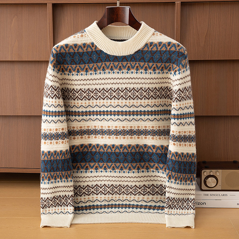 Men's Christmas Jumper Premium Pure Wool Cashmere Crewneck Sweater Classic Argyle Knit Pullover Fair Isle Sweater Soft Warm Breathable