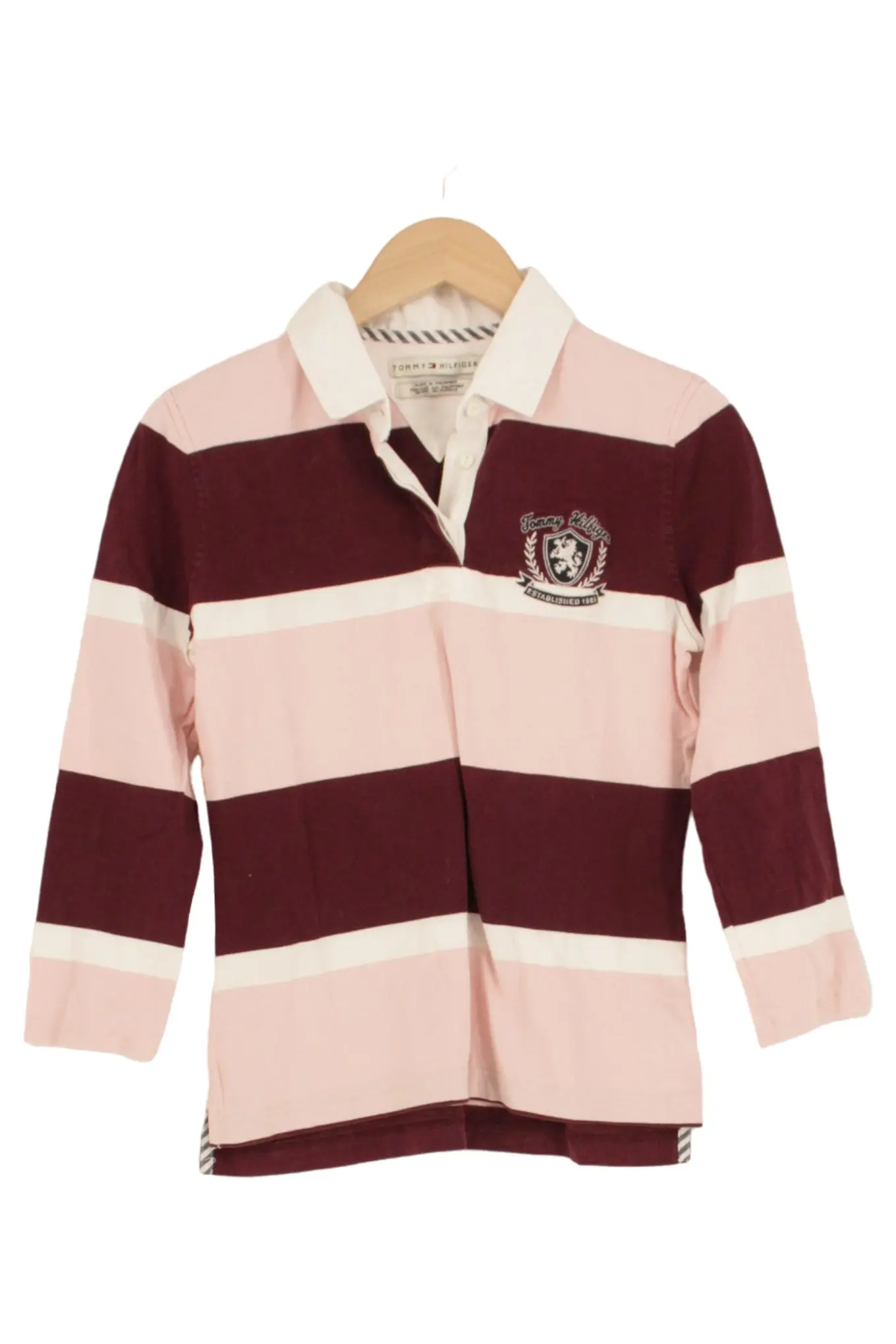 TOMMY HILFIGER Kinder Langarmshirt M Gestreift Rosa/Weiß Top