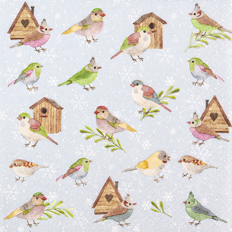 Home Fashion, Birds & Houses, Lunch-Servietten aufgefaltetes Maß 33 cm x 33 cm, im Viertelfalz, 20 Stück pro Pack