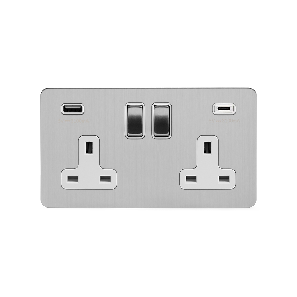 Soho Lighting Black Nickel Flat Plate 2 Gang 13A DP Socket with 2 x USB-A 4.8A