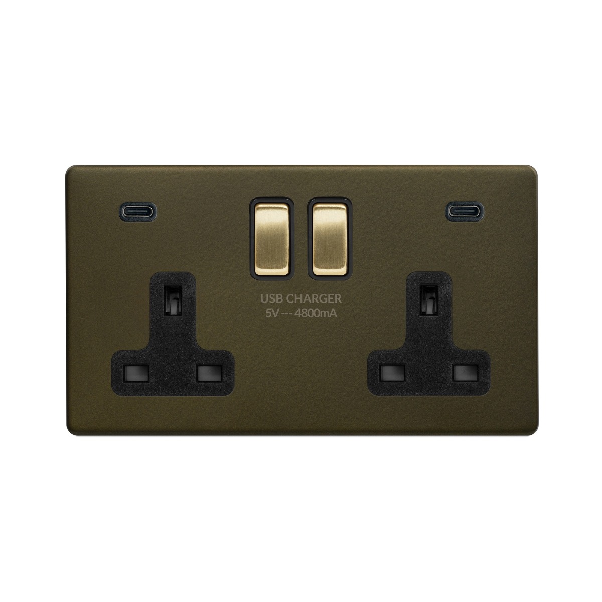 Soho Lighting Bronze & Brushed Brass 2 Gang USB C+C Socket (13A Socket + 2 USB C 4.8A Ports) Black Insert