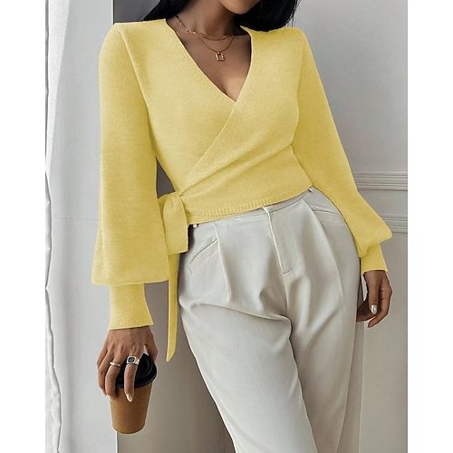 Per donna Felpa Cardigan Elegante Streetwear Casual Tinta unica Scollo a V Allacciato Lavorato a maglia Manica a Lanterna Manica Lunga Top corti Maglia Quotidiano Ferie Uscire Nero Bianco Autunno