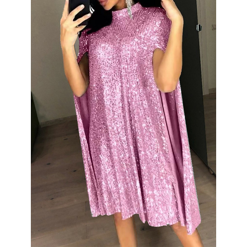 Women's Mini Dress Shift Dress Party Cocktail Semi Formal Outdoor Party Wedding Guest Loose Fit Solid Color Long Sleeve Turtleneck Silver Rose Gold Black Pink Summer Spring Fall