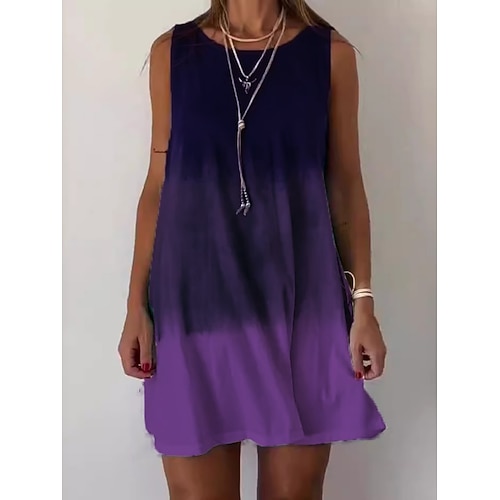 Per donna Mini Abito Tubino Abito a Portafoglio Vestito Estivo Abito Estivo Casual Quotidiano Vestibilità regolare Tinta unica Grafico Blocco di colori Senza Maniche Girocollo Bianco Rosa Viola Verde