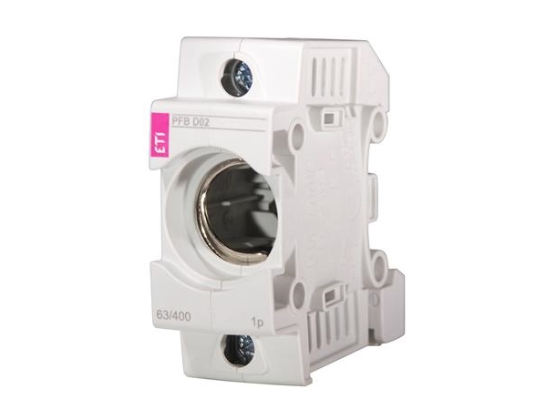 Sikringsholder D02 E18 1 pol, 63A, 400V AC, Monteres på DIN-Skinne 35mm. Leveres komplet.