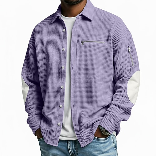Per uomo Camicia Camicia a nido d'ape Camicia casual Camicia con colletto alla coreana Camicia con Bottoni Blu marino Viola Verde Grigio Azzurro Manica Lunga Semplice Collo alla coreana Quotidiano