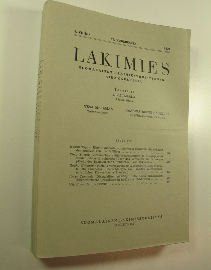 Olli Ikkala : Lakimies, 77. vuosikerta (1979), numerot 5-8 : suomalaisen lakimiesyhdistyksen aikakauskirja