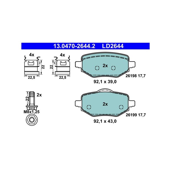 Jarrupalasarja, levyjarru, Taka-akseli Ate 13.0470-2644.2 - citroën, ds, opel, peugeot - OE 16 435 742 80, 16 803 016 80