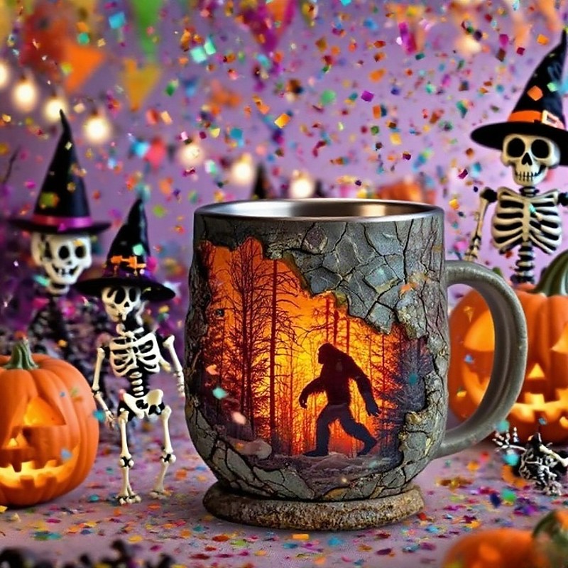 Resin Bigfoot Forest Fire Mug Cup Vintage 3D Bigfoot Outdoor Coffee Gifts Cup Campfire Mug for Camping Kitchen Cryptid Believers Nature Lovers Mountain Hiking Camping Lovers