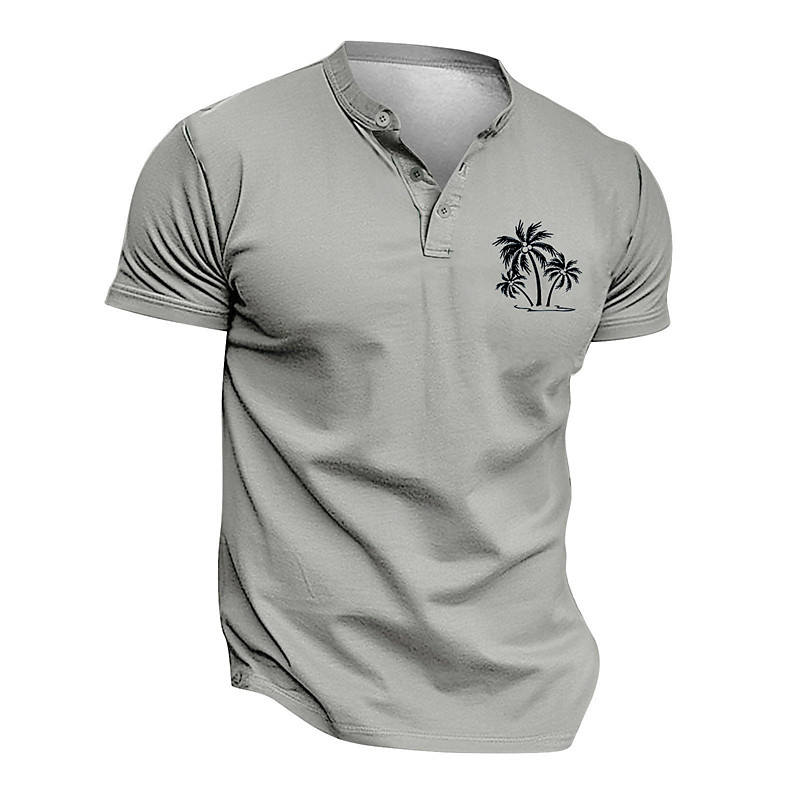 Men's T Shirt Henley Shirt Tee Short Sleeve Shirt Short Sleeve Henley Summer Spring Palm Tree Fashion Streetwear Casual Buttons Print Daily Vacation Sports Outdoor Black Light Green White Top Tee