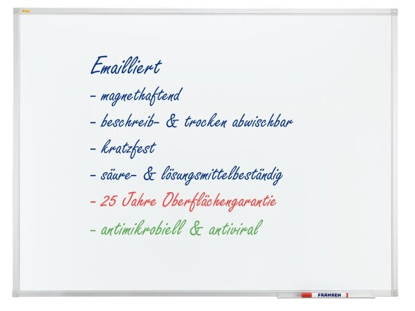 Franken Whiteboard Schreibtafel X-tra! Line, 120 x 90 cm, weiß, antimikrobiell, emailliert, silbereloxierter Aluminiumrahmen