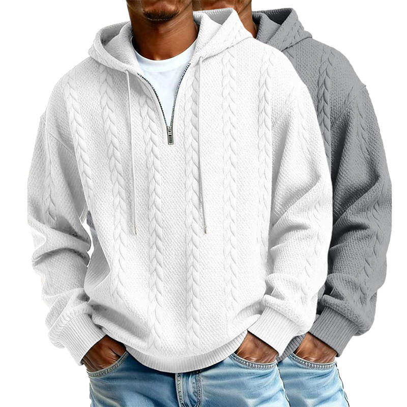 Men's Jacquard Hoodie Quarter Zip Hoodie ApricotGray Light BlueBlack WhiteLight Gray Light GreenNavy Blue Light BluePurple Hooded Plain Textured Casual Daily Sports Outdoor Streetwear Cool