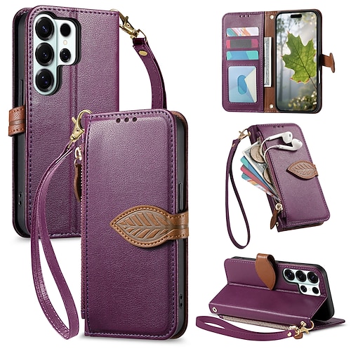 Handy Hülle Handyhüllen Für Samsung Galaxy S26 S26 Plus S26 Ultra Brieftaschenhülle Flip-Cover Reisverschluss Mit Handgelenkschlaufe Ständer Retro TPU PU-Leder