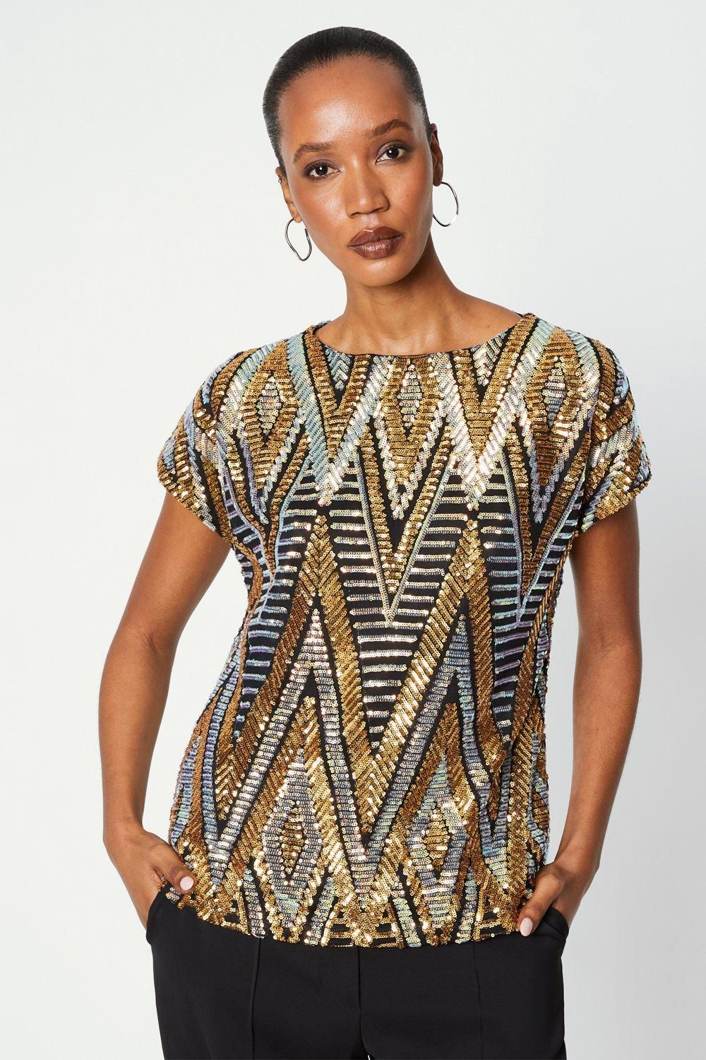 Principles Womens Multi Sequin Cold Shoulder Top - Black - Size 14 UK | Principles Sale | Discount Designer Brands