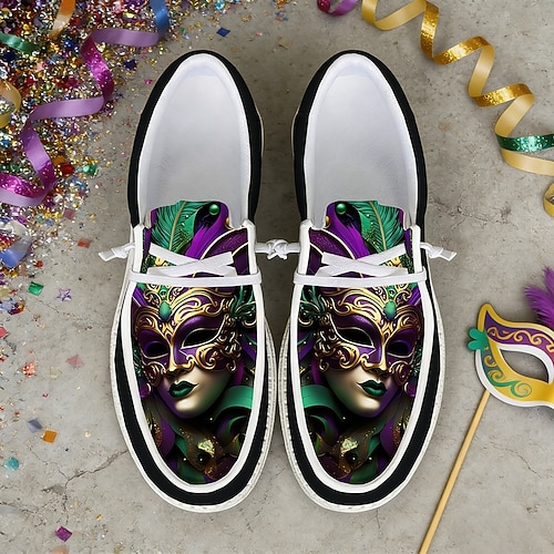 Scarpe slip-on da uomo con maschera veneziana per il carnevale scarpe da barca artistiche in tela casual per celebrazioni di Mardi Gras feste in costume festival passeggiate e stile urbano creativo